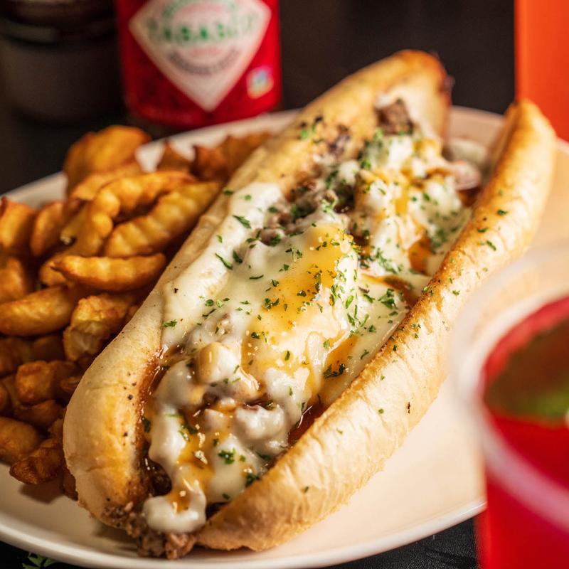 Saucy, sautéed mushrooms, thick-cut Swiss